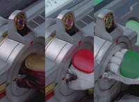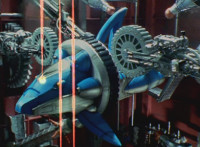 Hawkzord, Dolphinzord, and Lionzord get laser-repairs while in their hangars. |