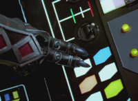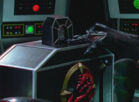 Cuts follow-up wide shot of cockpit as Green Samurai talks. |