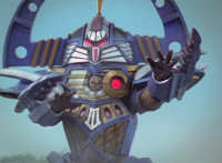 Hyper Zurganezord lowers arms as Power Sphere spins before it. |