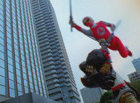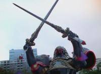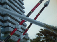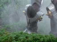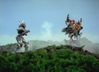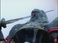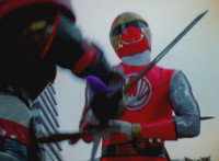 Cuts prior shot of Red readying blade; split to fit a US insert of Zurgane's sword against Yellow's chest. |