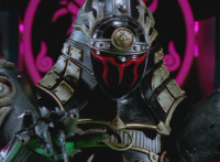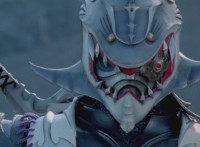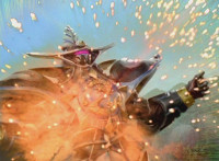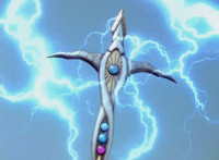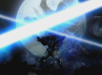 Hyper Zurganezord motions glowing sword beneath a full moon, before slashing repeatedly forth. |