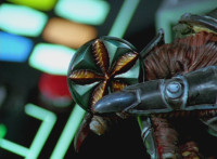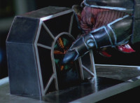 Cuts follow-up of little bug alien in Zurgane's head getting sliced. |