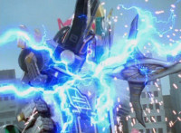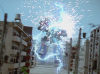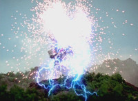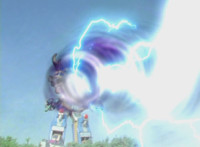 Hyper Zurganezord raises its sword high and rains down electricity explosively upon the city around it. |