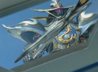 Hyper Zurganezord turns and looks at Hurricane Megazord as it lands and poses battle ready. The Rangers speak quickly in their cockpit, as Zurgane watches coldly from his own. |