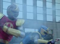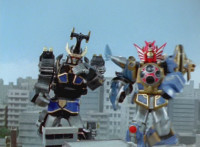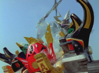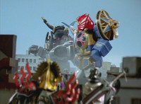 Red wipes his nose and replies, Green turns sharply, Zurganezord III goes to strike Samurai Star, when Thunder Megazord fires its waist cannons forth, bursting Zurganezord III, before Thunder punches it in the chest a few times until it topples over. Crimson speaks, Samurai Star appears to reply, Storm Megazord steps forth and poses battle ready, prompting the other two to do the same. |