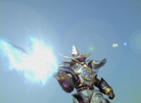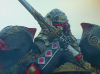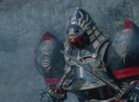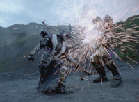 Vexacus fades into view in the quarry, walking toward Zurgane, who spots him and speaks, prompting Vexacus to stop, facing him across the field, both exchanging words, before Vexacus finally fires a fist bolt at Zurgane, who blocks it with his swords, which explode into a pair of blade shards that fly into the air and impale in the ground. Zurgane looks helplessly at his broken swords, before Vexacus races forth, and grabs a blade shard. |