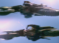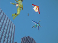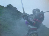 Blue flies her Glider, Zurgane speaks then leaps out of Hyper Zurganezord, streaking from each Glider sparkily until the three Wind Rangers fall from them. |