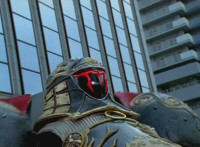 Zurgane poses with swords, when the Thunders leap at him, he blocks their blades and sparkily slashes them back, before doing so again, knocking them down. Zurgane poses, then turns, when the Winds fire their Ninja Lasers at him, he blocks and returns fire with his swords, crackling them. |