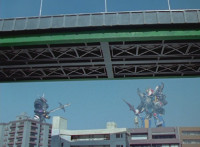 US footage of Vexacus & Shimazu superimposed into shot. |