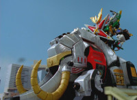 Cuts follow-up lengthy sequence of Megazord getting repeatedly attacked while the Rangers try and fail to summon Mammothzord. |