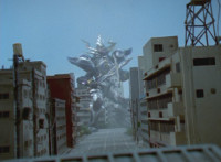 Hyper Zurganezord walks into the city, before finally stopping before some buildings. |