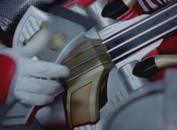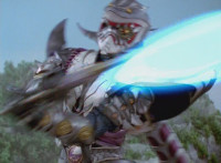 Vexacus whips his sword around, slicing the energy beams into nothingness, which causes the Megazord to gawk. Red pulls out the Lightning Riff Blaster, strums it. |