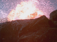 Close-up on Thunder Megazord & Vexacus exploding massively together. |
