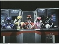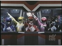 In Megazord cockpit, the five Rangers erupt in fist-raising excitement, Red looking at Blue briefly. They all then leap out simultaneously. |