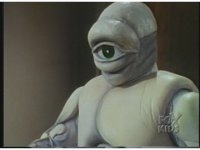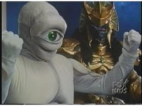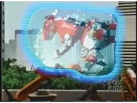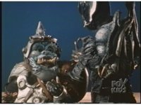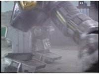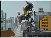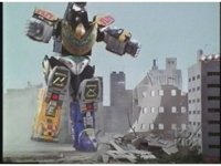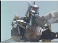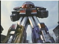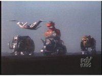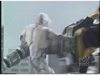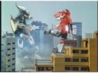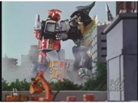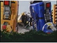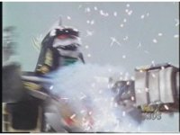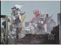 Megazord kicks at Dragonzord, it's blocked. Dragon smacks, Mega blocks, but a second hit succeeds in causing Megazord to revert to Cyclops and zoom in. |