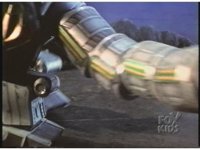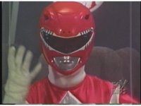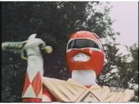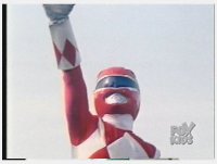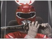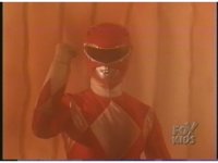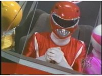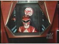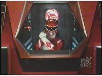Close on Red in Megazord cockpit, he slowly clenches right hand into a fist, then leaps out of seat. |