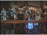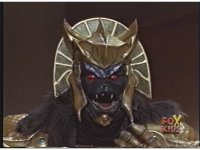 Close on US Goldar's head, talking while thrusting up left fist twice, stopping with a slight turn to our right. |