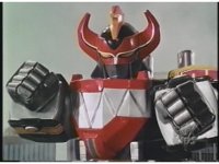 Quick zoom out as Red lands in Megazord cockpit, and whole team does the arm-cross, fist-palm, thumbs-up motioning. |