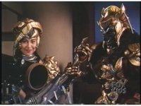 Close on Red in Megazord (shh!) cockpit, playing Dragon Dagger's flute. |