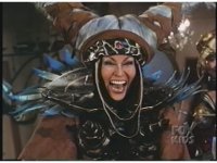 On balcony between Squatt, Baboo, Scorpina, and Goldar, quick zoom on Rita's face as she frowns, gestures, talks unhappily, and glowers wide-eyed. |