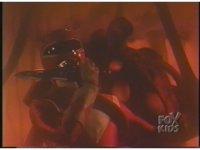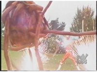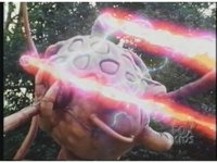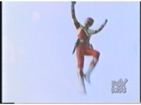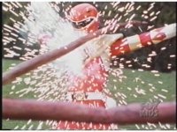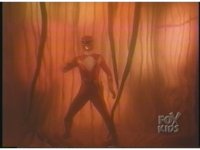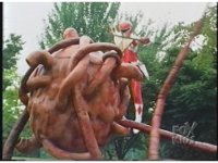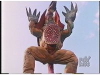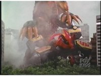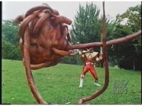 Close on Red Ranger bursting with sparks, until tentacle falls from around his neck. |