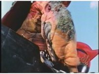 Close on Dragonzord's hands, dangling uselessly against his waist. |