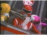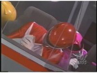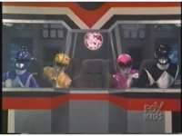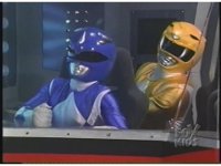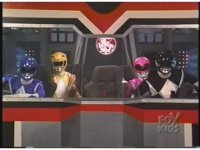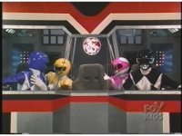 In Megazord cockpit, it shakes a little, Yellow & Pink gripping chairs in front of them while nod-talking forth a bit. |