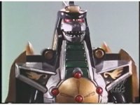 Dragonzord stops walking, spreads arms then zoom in on his chest plate, the five surrounding red lights blinking. |