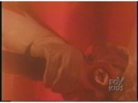 Close on Red grabbing his Power Sword from his left side of his belt area. |