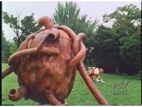 Zoom out as Red hits the lawn and gets up, Cardiatron hovering in the foreground. |