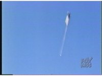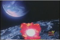 Static shot of the Earth from the Lunar surface as red ball of energy shoots toward the planet. |