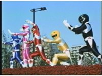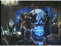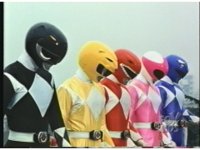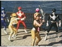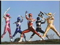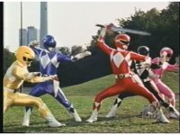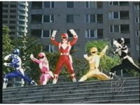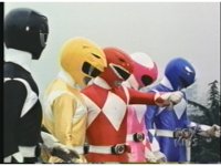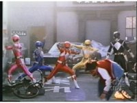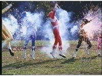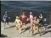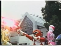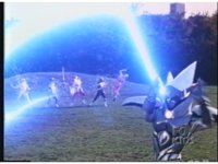 Five Rangers remain together as Power Blaster unleashes five beams of power at the screen. |