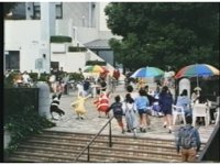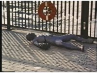 Fades in from white. Cuts prior shots of him approaching Japanese woman & child. |
