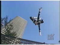 Red, Black, and Blue, Twin Rangers flip over the camera at alternating angles. |