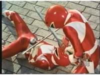 Zoom in on Red Ranger as he staggers back to his feet while using his Power Sword to lean against. |