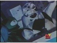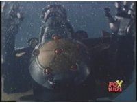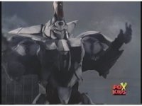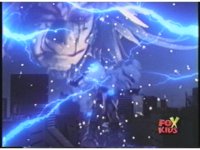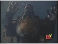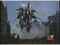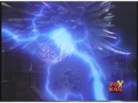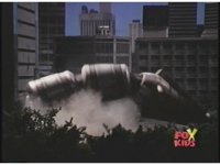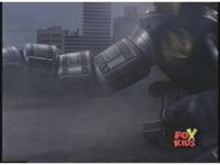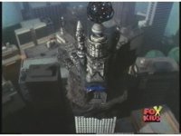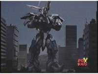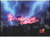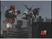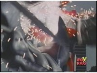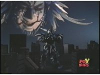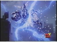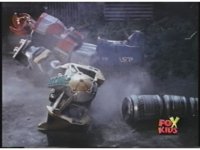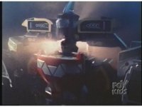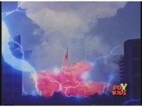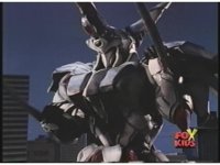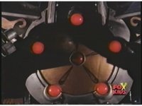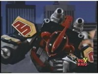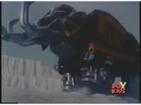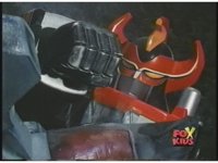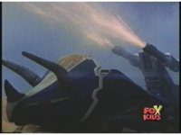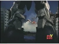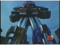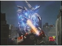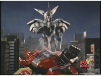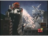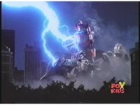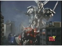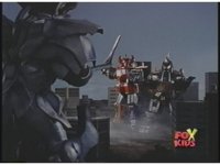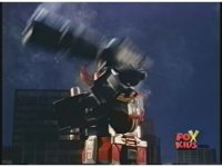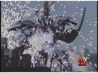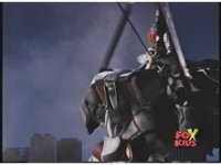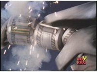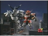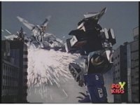 Prior sequence of Cyclopsis shooting chained-hand at Megazord, and jerking it closer, are cut. |