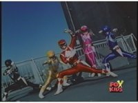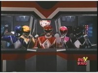 In Megazord cockpit, all five Rangers cross wrists both ways then give double thumbs up. |