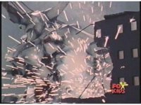 Repeat closer angle, as sparks burst around Dragonzord Battle Mode, until it tumbles away. |