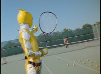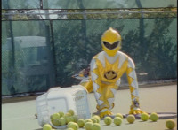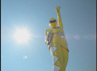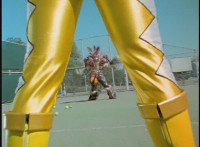 Donkeyvac towers gigantically over us, the Rangers react, Yellow then talking into her Morpher. |