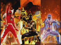 The three male Dino Rangers morphing sequences: Red, Black, Blue. |