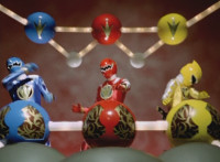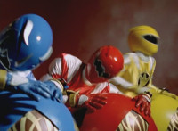 Zoom out from each Ranger as they stand, arms crossed, in bright whiteness. |