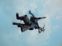 Some shots are shortened; cuts follow-ups of Angor readying right arm and leaping back up into the sky. |