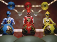 Each Ranger leaps up and merges into the forehead of their respective Dinozord. |