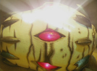 Yellow's Morpher blinks, so she looks at it and talks to it. |