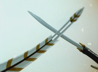 Yellow releases White, and he falls onto the ground. Yellow flies back at him, so he quickly draws up some laser arrows and flings them her way, bursting her. |