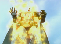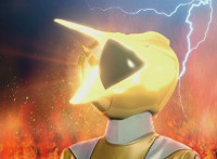 Dino Stegazord teleports away in golden sparkles. |