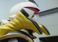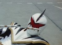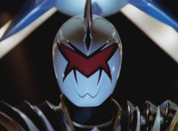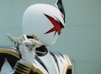 As White watches, Yellow falls to the ground, no longer Super Dino, Red & Blue joining her side, whipping out their Thundermax Blasters and firing on White. He absorbs their energy with his White Drago Sword, then flings it all back to them at once, explosively. White speaks and rests his sword on his shoulder. |