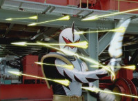 Red side is recycled from Aba #13; right side is from Aba #02, except for the final shot, which is taken from a Blue/Yellow split screen SDM montage (since Blue's complete Abare Mode sequence never aired in Aba full screen). |