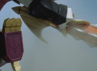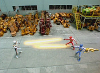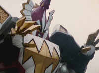 Pan up as Thundersaurus Megazord stands triumphant with its Ankylozord arm. |