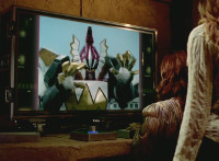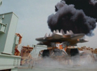 Altered to fit viewscreen; cuts follow-up of Croc O'Vile cheering. |